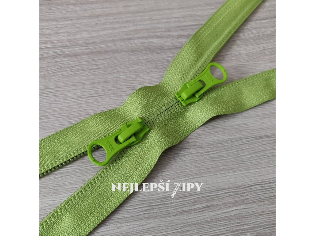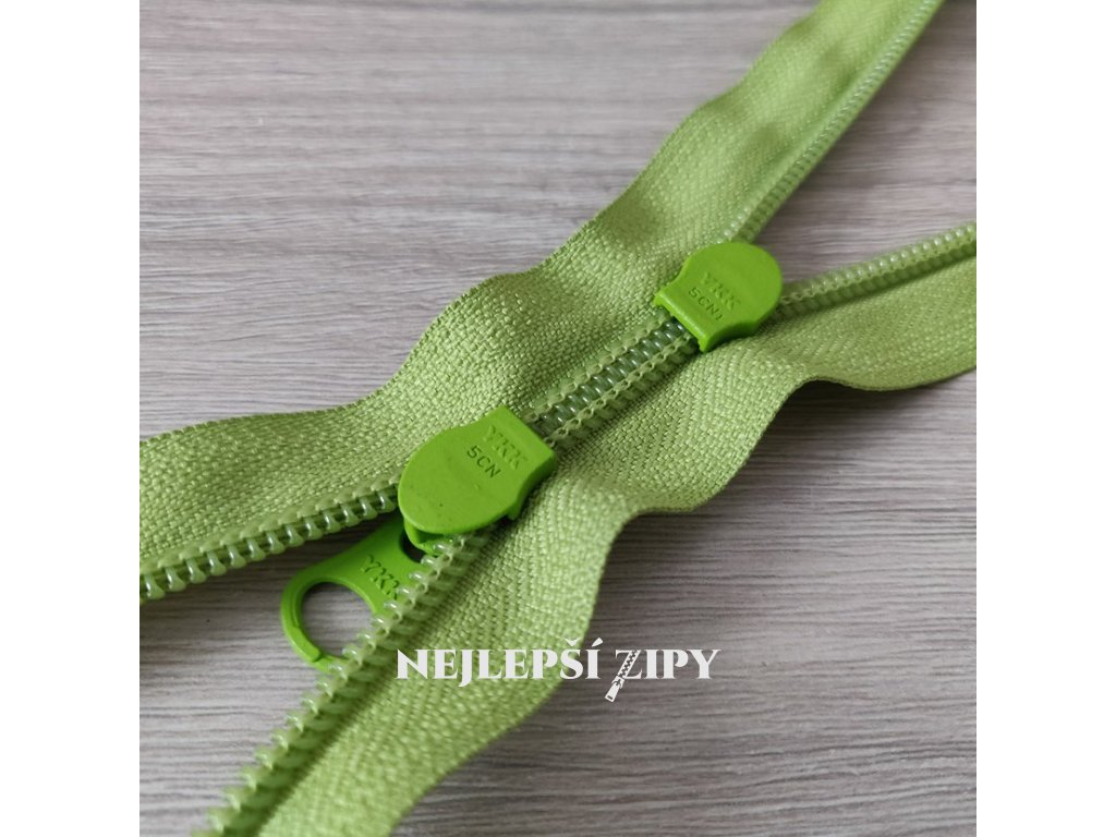 YKK reverzní spirálový zip s matnými 2 běžci, vel. 5, světle zelená
